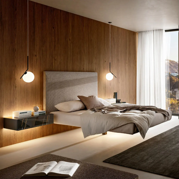 Le lit AIR de la marque LAGO se caractérise par son design épuré et sa légèreté visuelle.